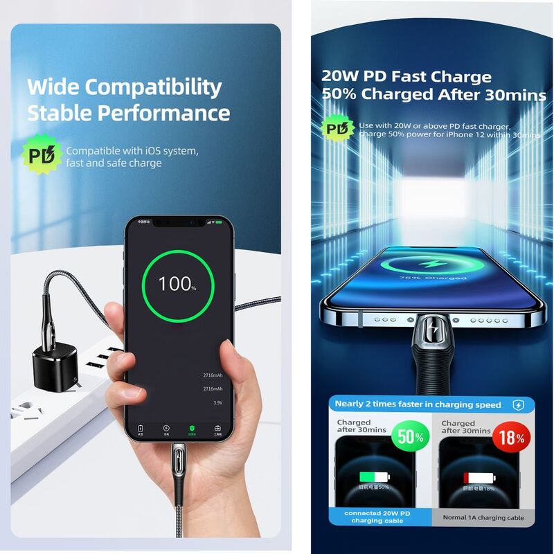- Use with 20W or above PD fast charger, charge 50% power for iPhone 12 within 30mins.