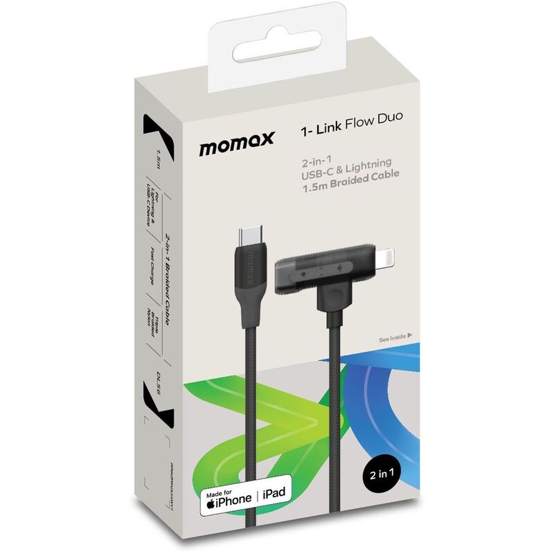 Momax 1-Link Flow Duo 2-in-1 USB-C To USB-C + Lightning Cable 1.5m - Black