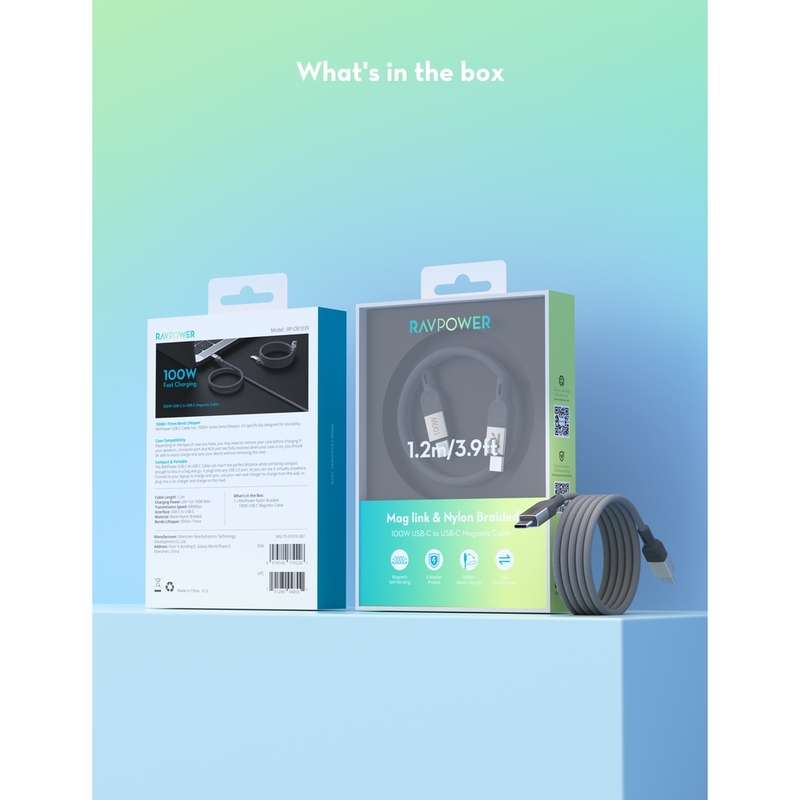 RavPower RP-CB1039 Mag Wire & Nylon Braided 100W - Gray