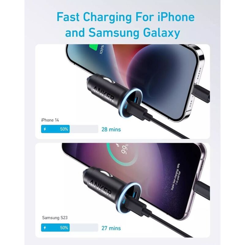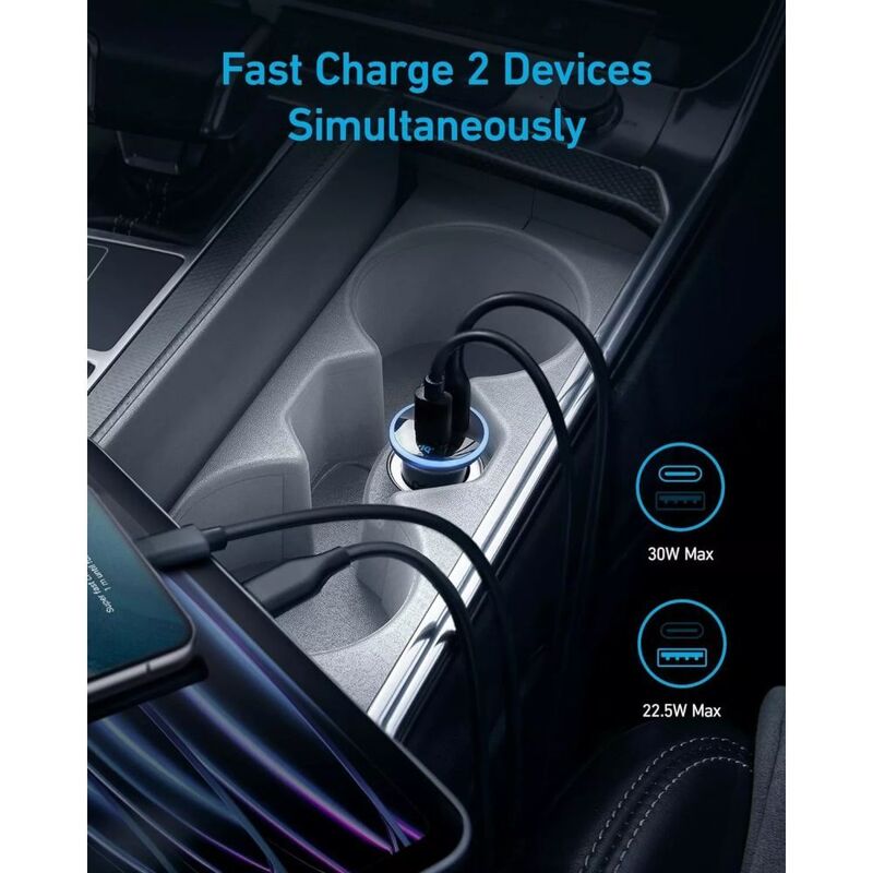 The Anker 323 Car Charger 52.5W is a powerful and efficient in-car charging solution designed to keep your devices powered up while on the road. With a sleek black design, this car charger blends seamlessly with most car interiors, providing both functionality and style. It features dual ports to charge multiple devices simultaneously, ensuring you and your passengers stay connected and charged during your travels.