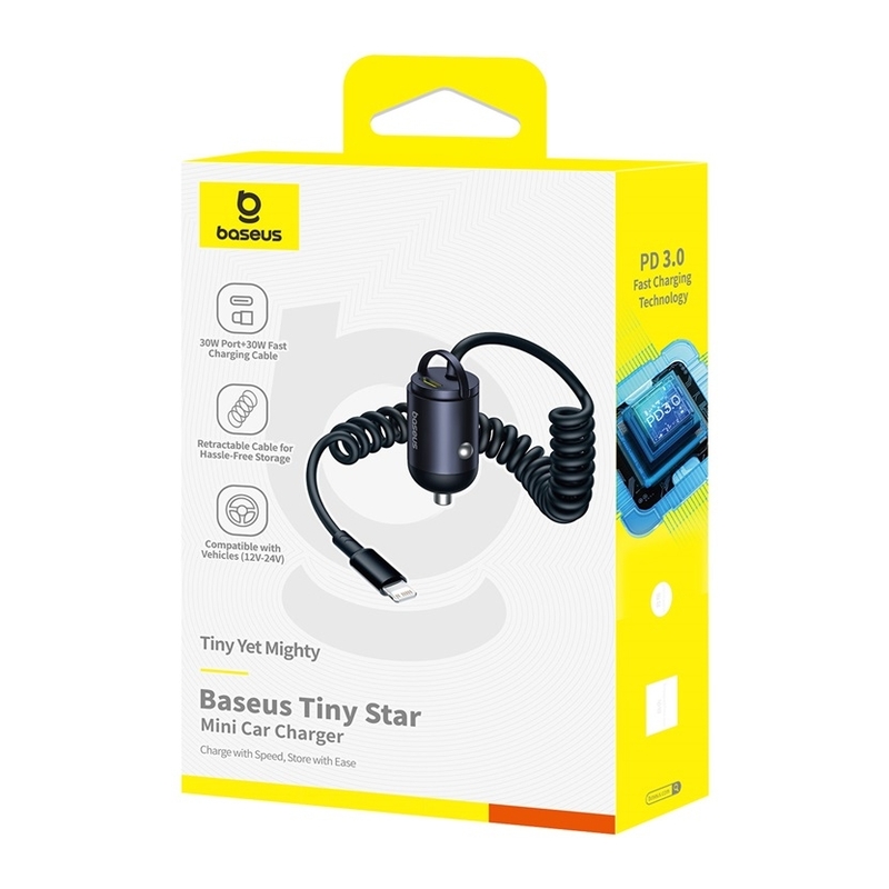 Baseus Tiny Star Mini Car Charger (C+L Cable Included) 30W - Cosmic Black