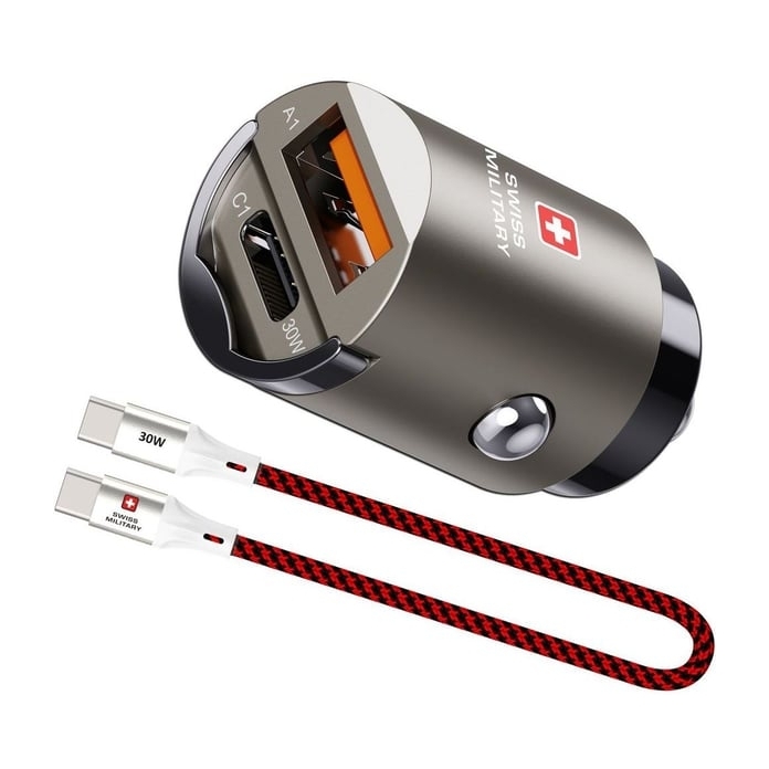 Swiss Military 30W PD Car Charger With 1 USB-C And 1 USB-A Port