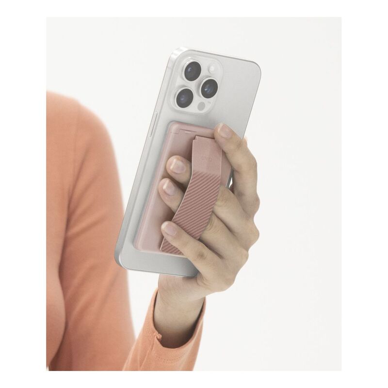UNIQ Heldro ID Magnetic Card Holder With Grip-Band And Stand - Blush