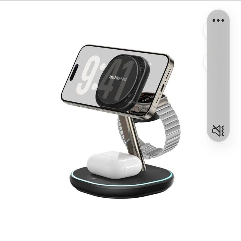 - 3-IN-1 Charging Capability: The charging stand enables simultaneous charging for iPhone, Apple Watch, and AirPods, providing convenience and efficiency for multiple devices.
