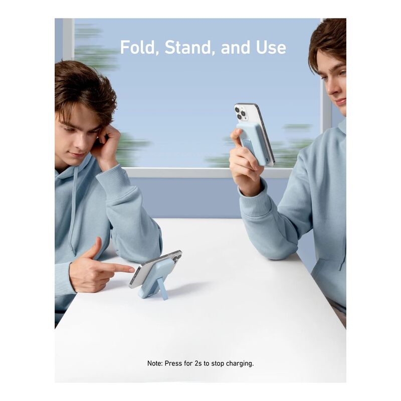 2-in-1: The portable charger wirelessly charges your phone while the practical foldable stand props up your phone for easy viewing.