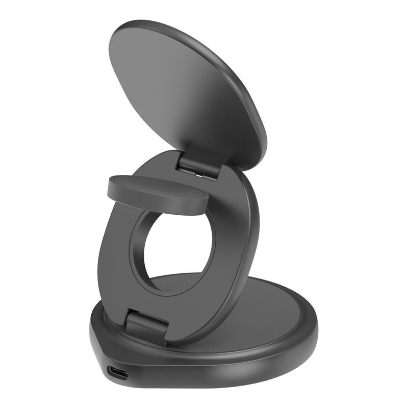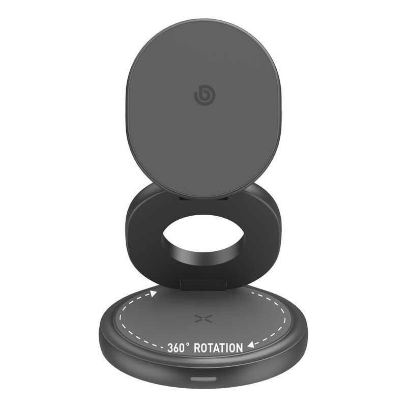 BAZIC GoMag Gyre 360 Rotating Base 3-in-1 Wireless Charger With Apple Watch And Airpods - Gunmetal