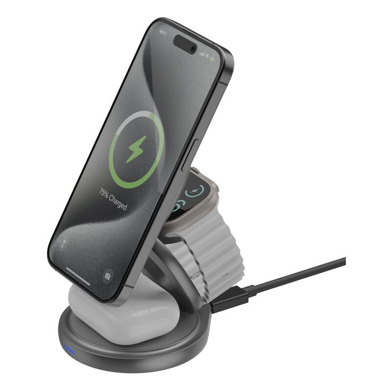 - 15W SLEEK ALUMINIUM DESIGN FOR EVERY ESSENTIALS Designed to power your iPhone, Watch and AirPods in one place