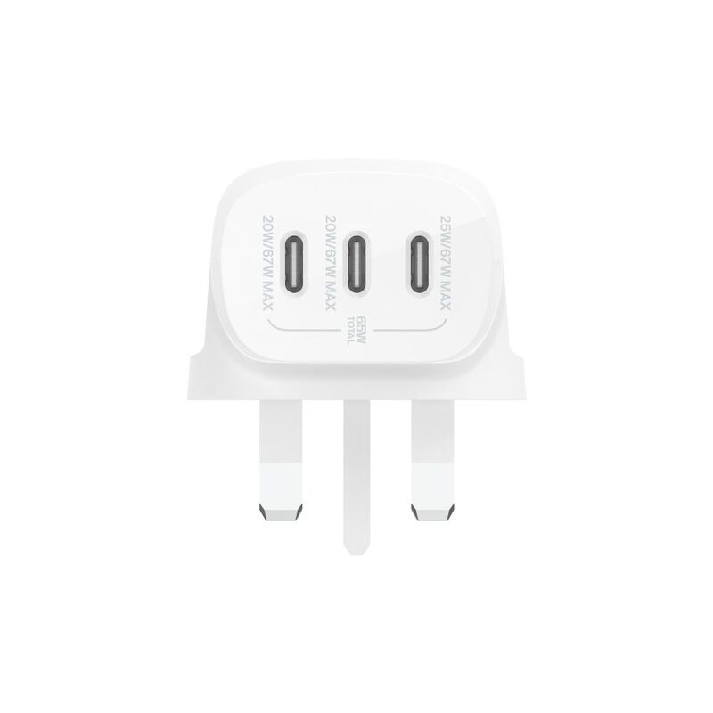 Belkin 67W Triple USB-C Ports Pd Wall Charger with Pps (25W+20W+20W) - White