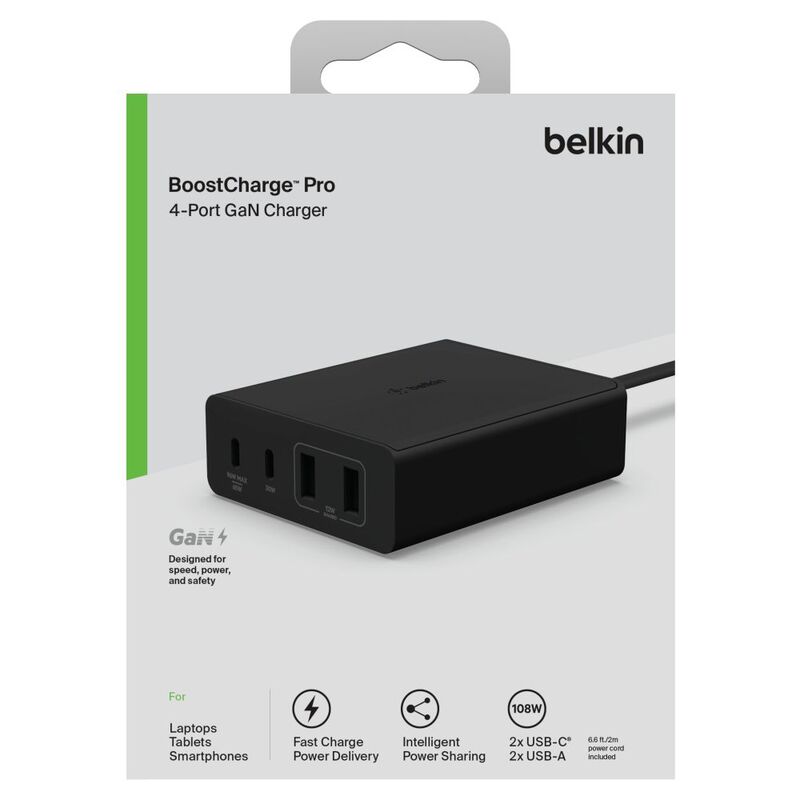 Belkin Boost Charge Pro 108W 4-Ports Gan Charger - Black