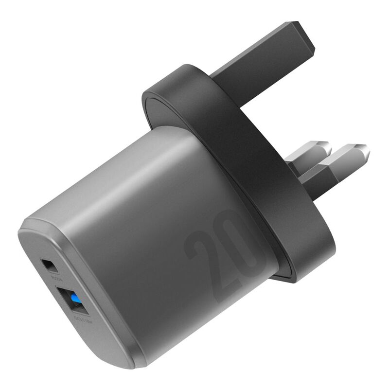 Energea AmpCharge GaN 20 1C1A PD/QC 3.0 Wall Charger 20W (UK) - Gunmetal