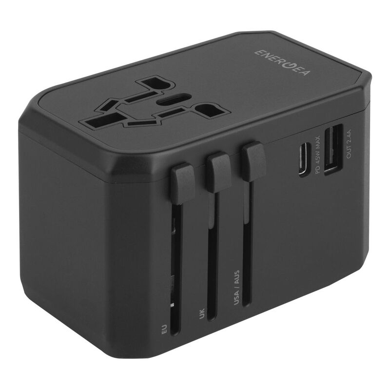 Energea Travel World Adapter GaN 65 1A 2C 65W - Gunmetal