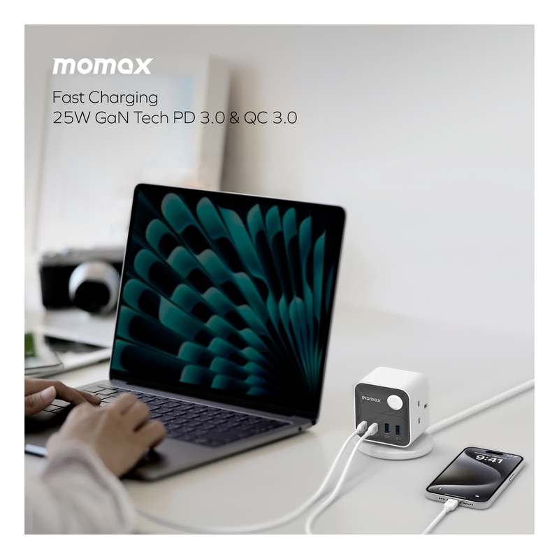 Momax 1-Charge Work Flow 3-Outlet Power Cube With USB