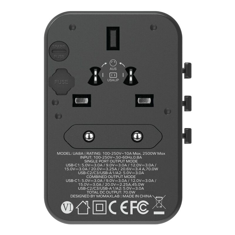Momax 1-World 70W GaN AC Travel Adaptor - Titanium