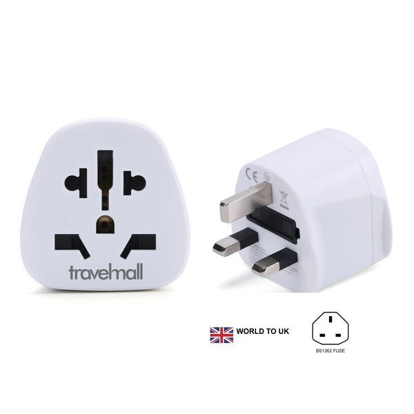 Travelmall World To UK -HK -Singapore 3-Poles Grounded Adaptor - White