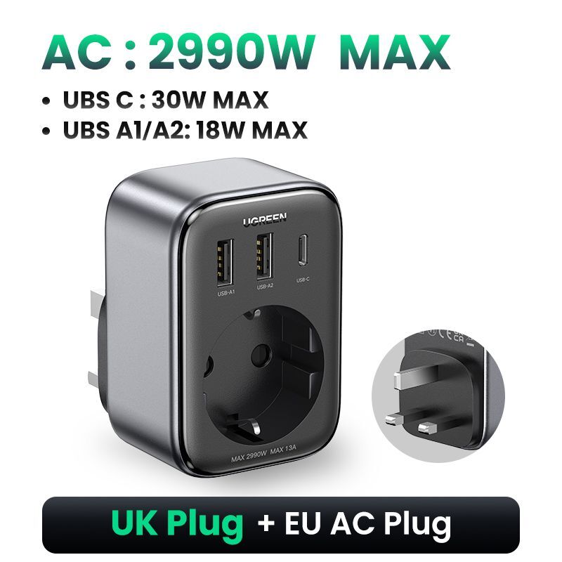 - UK Ratings: 2990W MAX, 13A MAX, 250V~