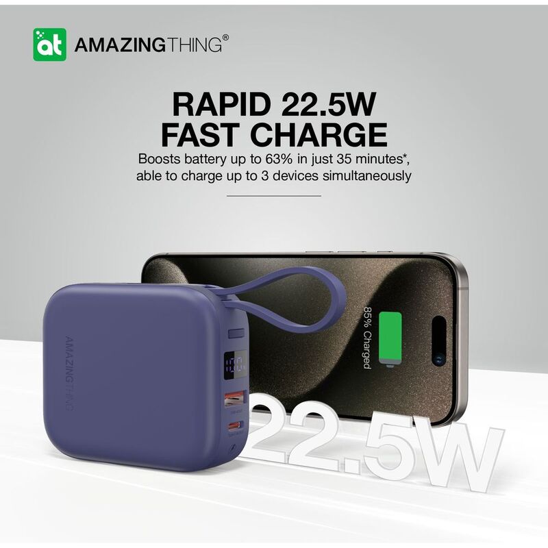 - Rapid 22.5W Fast Charge: Boosts battery up to 63% in 35 minutes, charging up to 3 devices simultaneously.