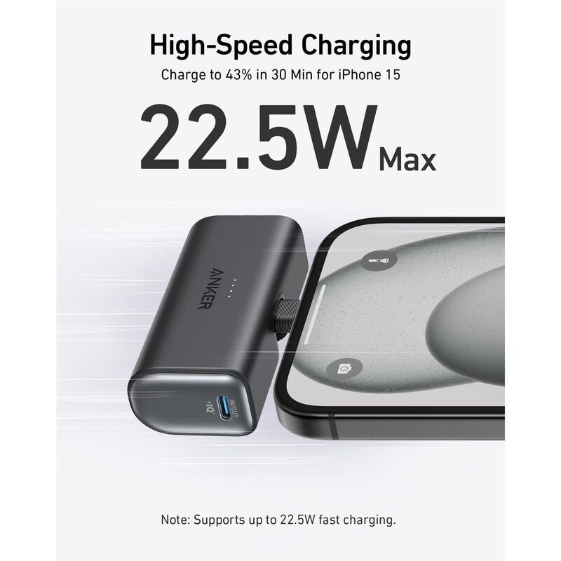 Anker Nano Power Bank (22.5W, Built-In USB-C Connector)Black