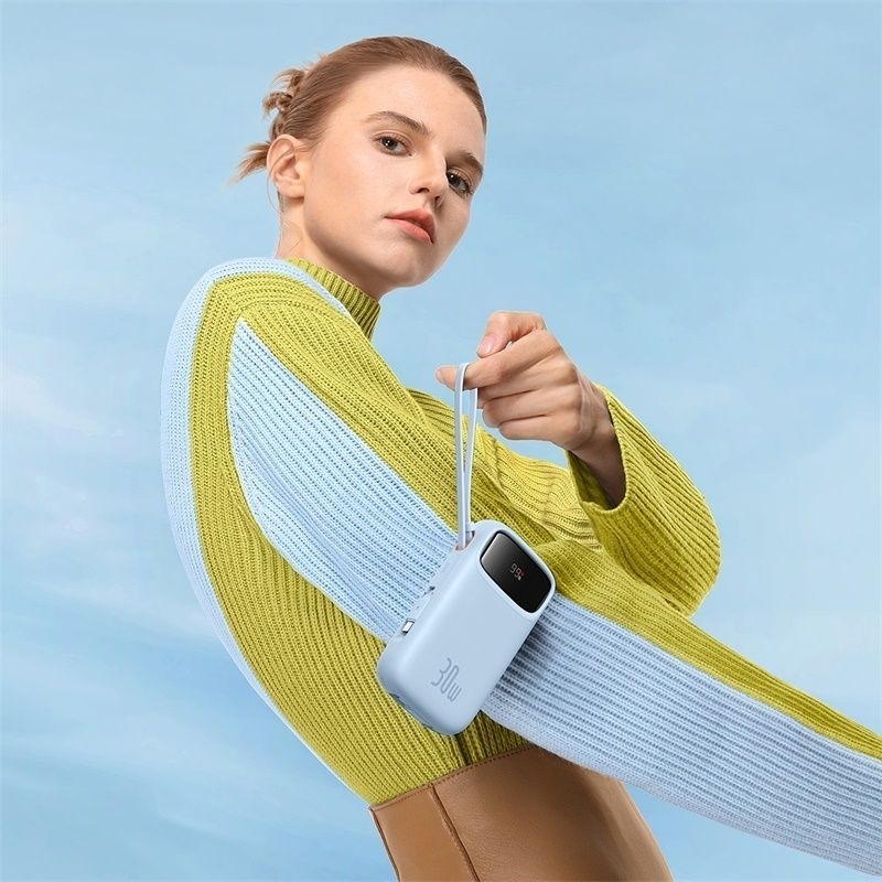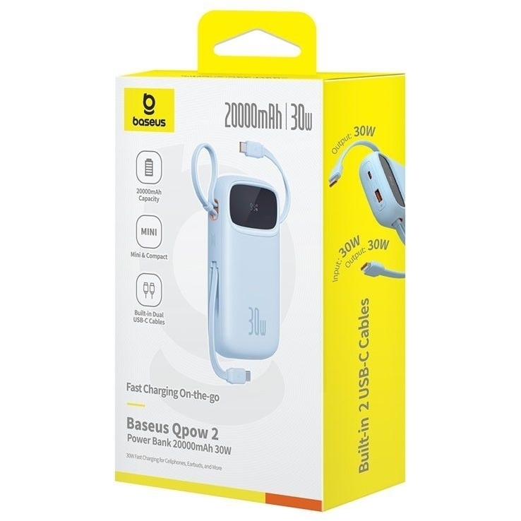 Baseus QPow2 Digital Display Fast-Charging Power Bank with 2 Built-in Type-C Cables 20000mAh 30W - Galaxy Blue
