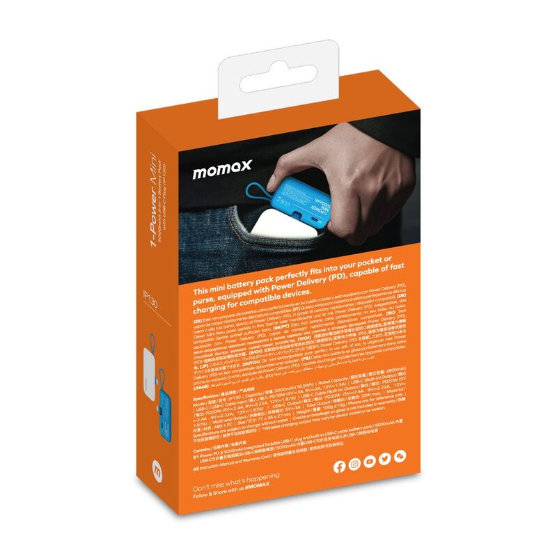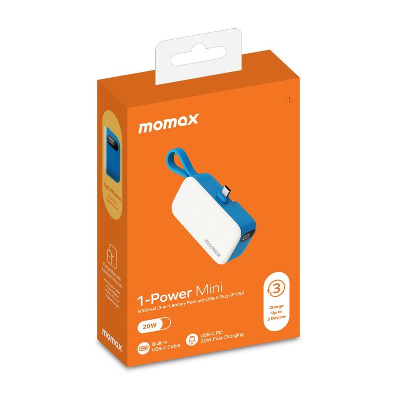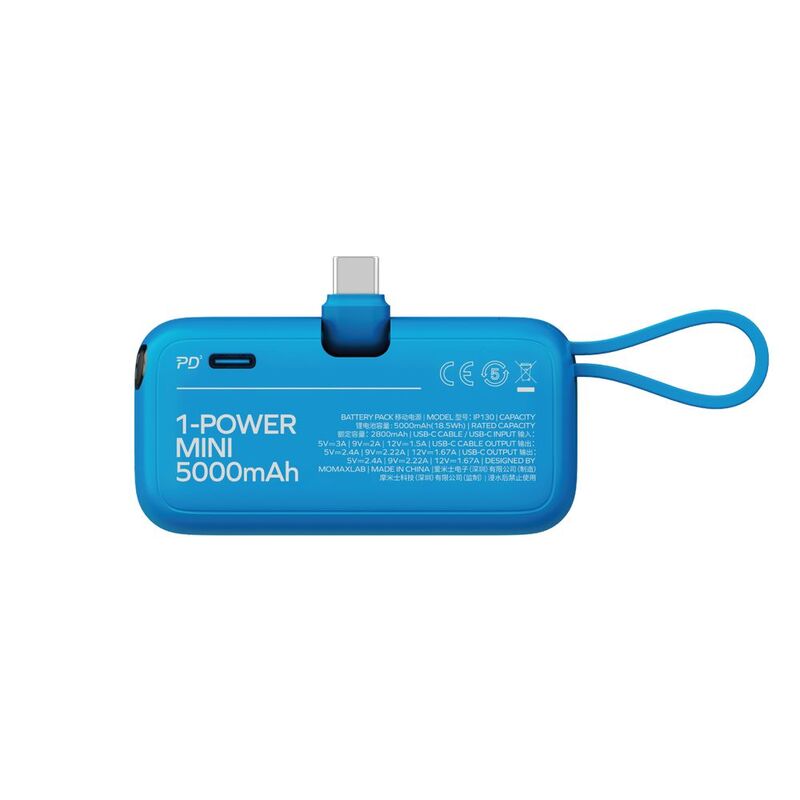 Momax 1-Power Mini 5000mAh 3-In-1 Power Bank With USB-C Plug - Blue