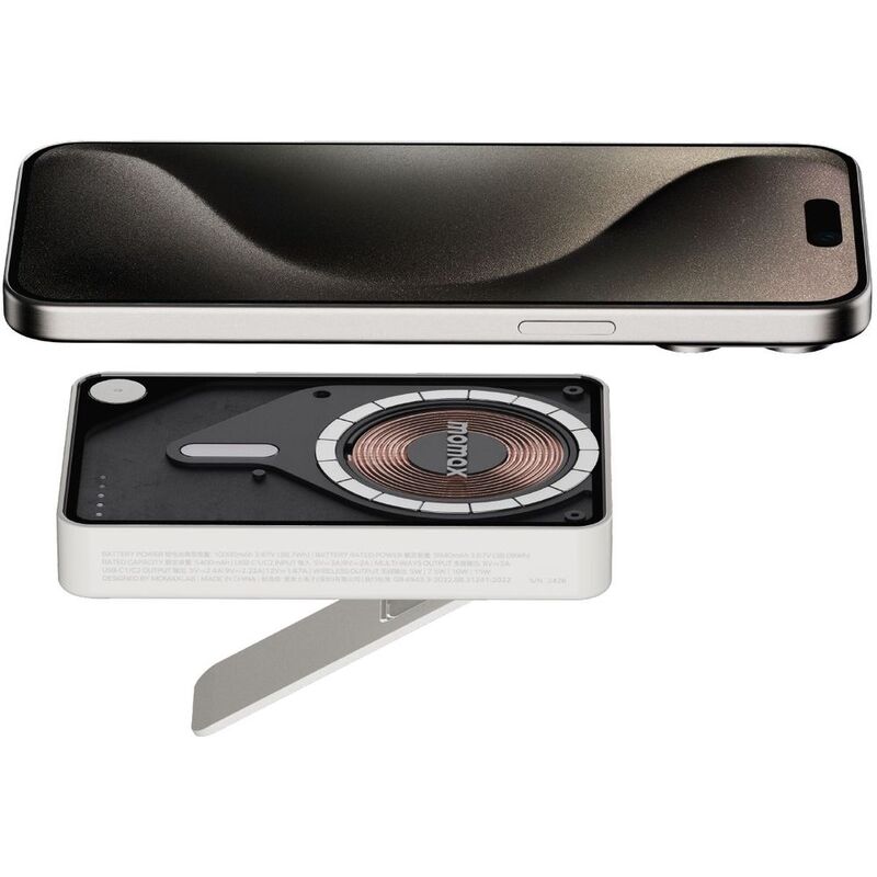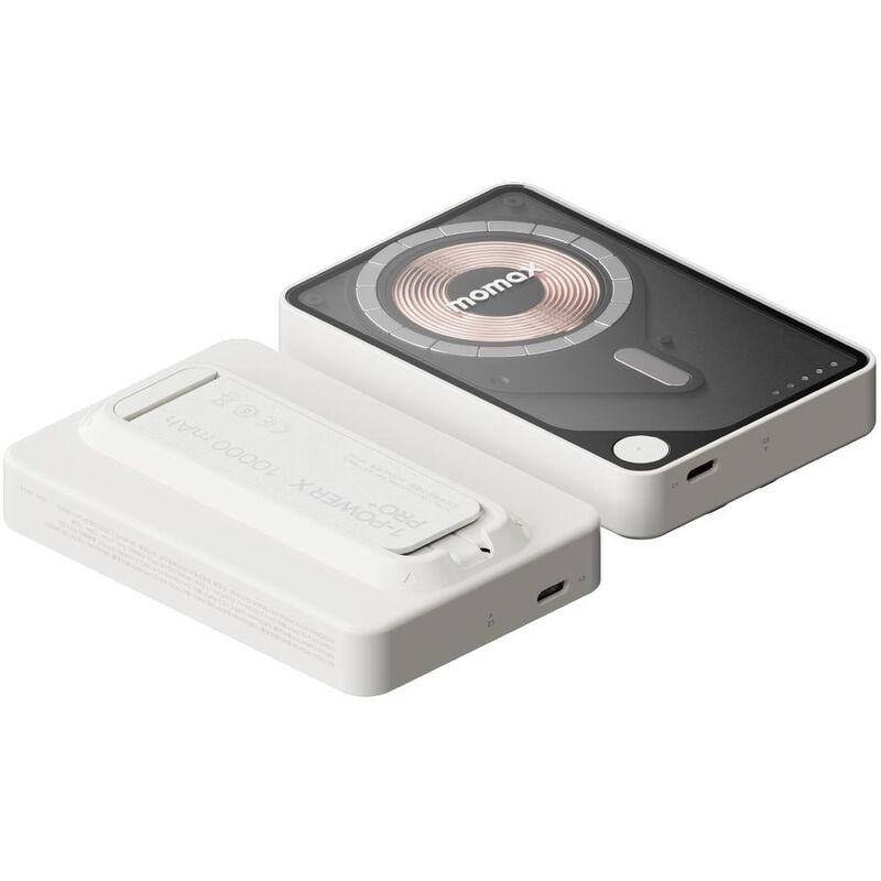 Momax 1-Power X Pro+ 10000mAh Magnetic Wireless Power Bank With Stand And Built-In USB-C Cable - White