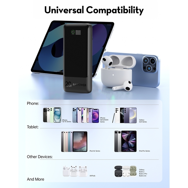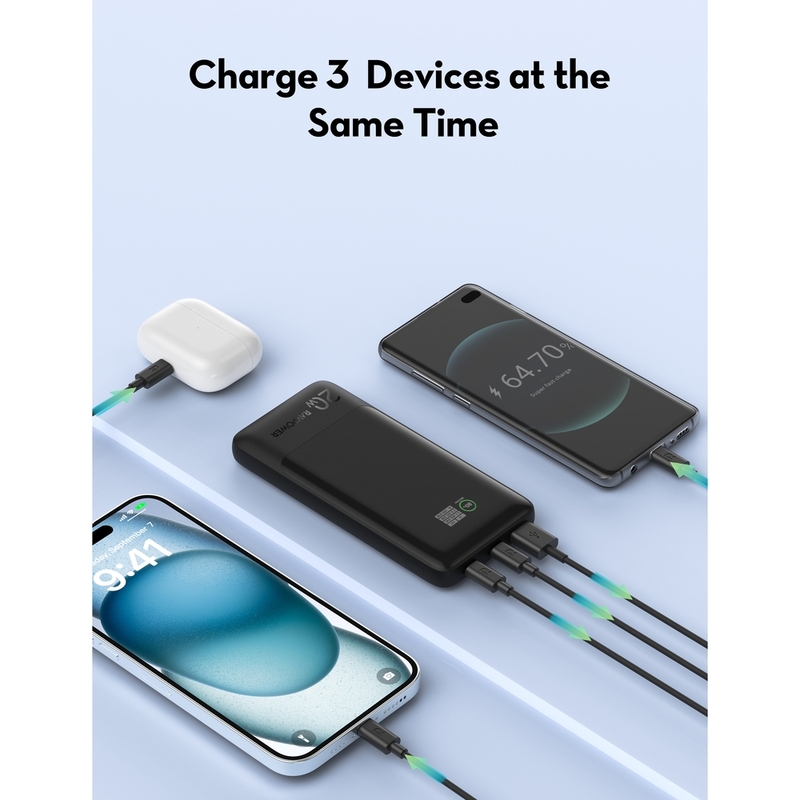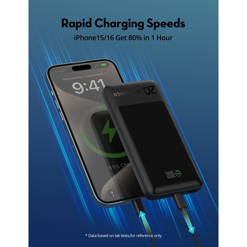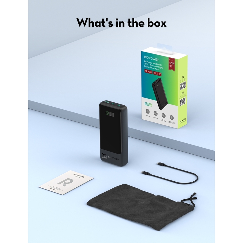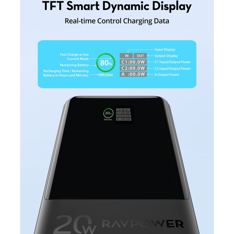 RavPower PB1237 10K mAh TFT Display Power Bank 2C 1A PD20W - Black