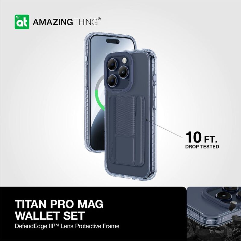 Amazing Thing Titan Pro Mag Wallet Drop Proof Case For iPhone 15 Pro Max 6.7-Inch - Dark Blue