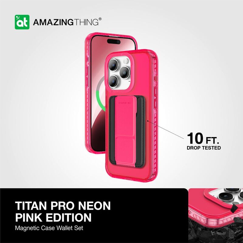 Amazing Thing Titan Pro Neon Mag Wallet Drop Proof Case For iPhone 15 Pro 6.1-Inch - New Pink