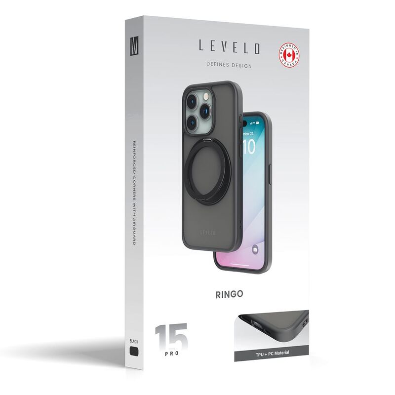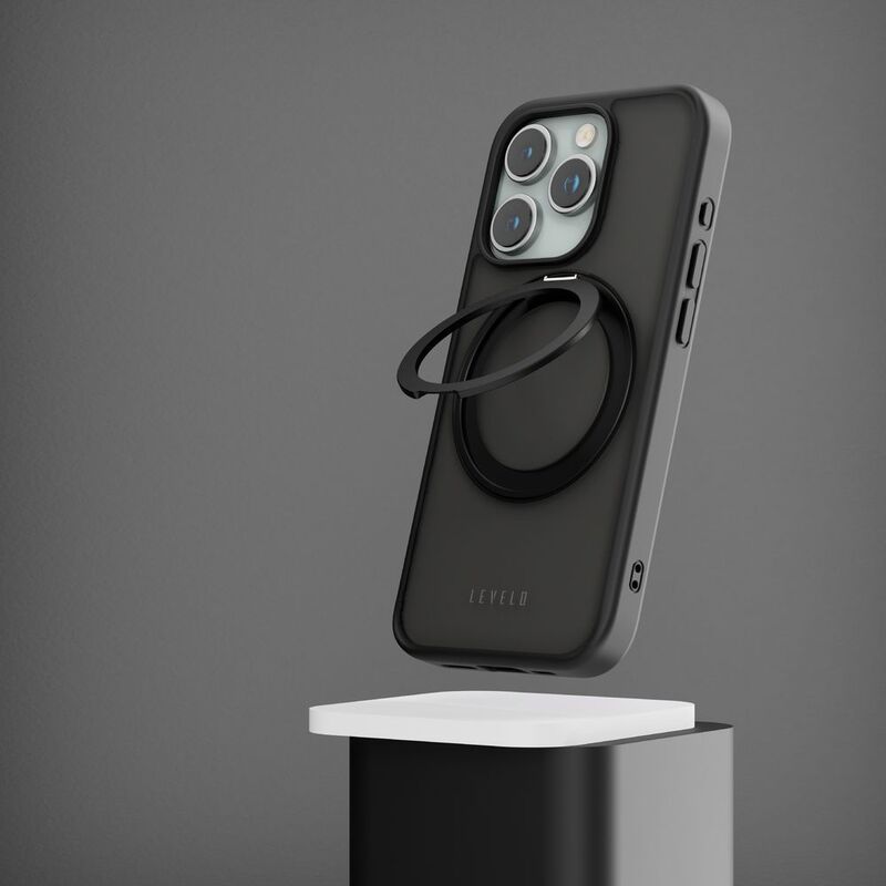 Levelo Magsafe Ringo Multi-Functional Kickstand Case For iPhone 15 Pro - Black