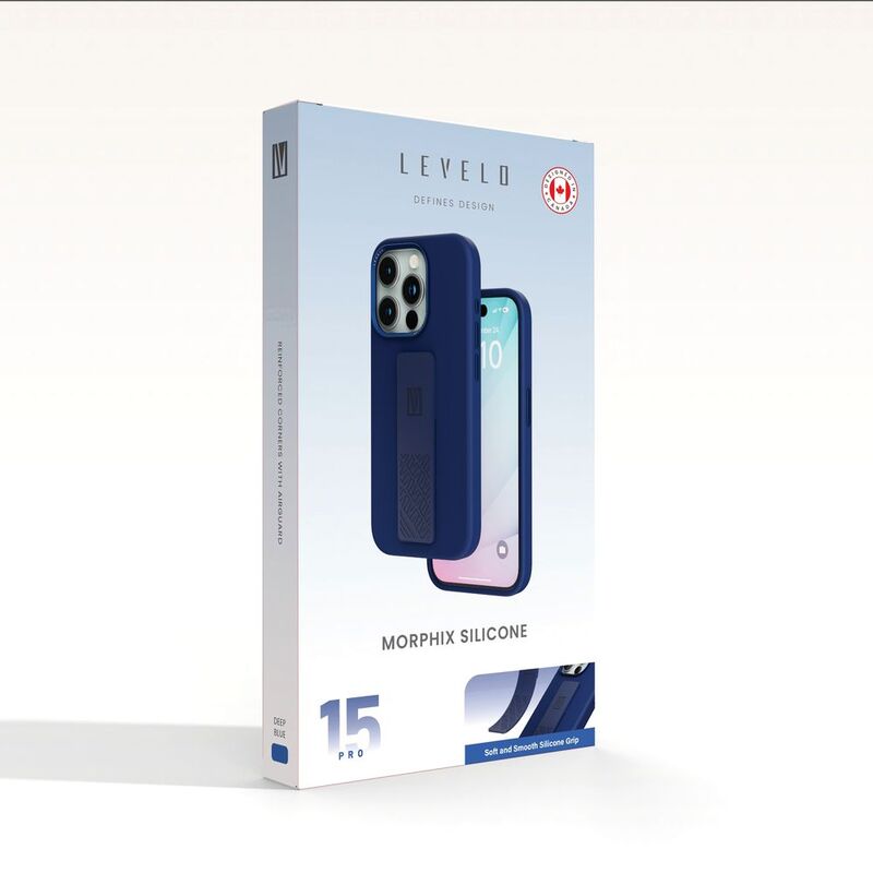 The Levelo Morphix Silicone Case with Silicone Grip is a protective phone case that aims to offer a balance between protection, functionality, and design. It includes several features to enhance the usability and safeguard your smartphone. Here's a breakdown of the key features: