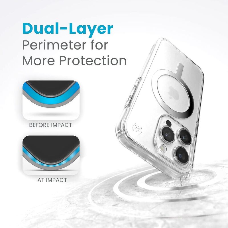 Speck Presidio Perfect-Clear Magsafe iPhone 15 Pro Case - Clear/Chrome