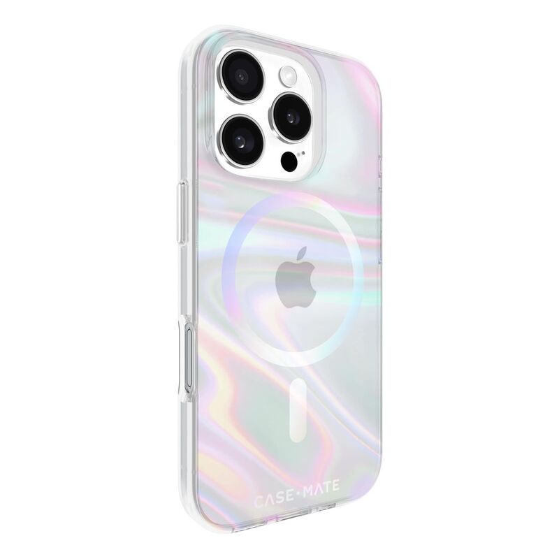 Case-mate Soap Bubble for the iPhone 16 Pro is so fresh and so clean. If you’re looking for an eye-catching clear phone case, this one’s for you. The Soap Bubble™ iridescent swirl gives off the dreamiest rainbow vibes.. This case also includes built-in magnets that allow you to simply snap on your MagSafe charger and accessories for the fastest wireless charging experience.