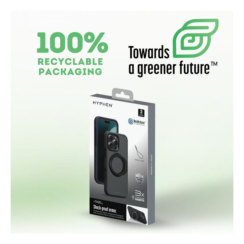 HYPHEN AXEL Shockproof MagSafe Case with Rotating Ring Stand for iPhone 16 Pro (6.3) with Lanyard Strap