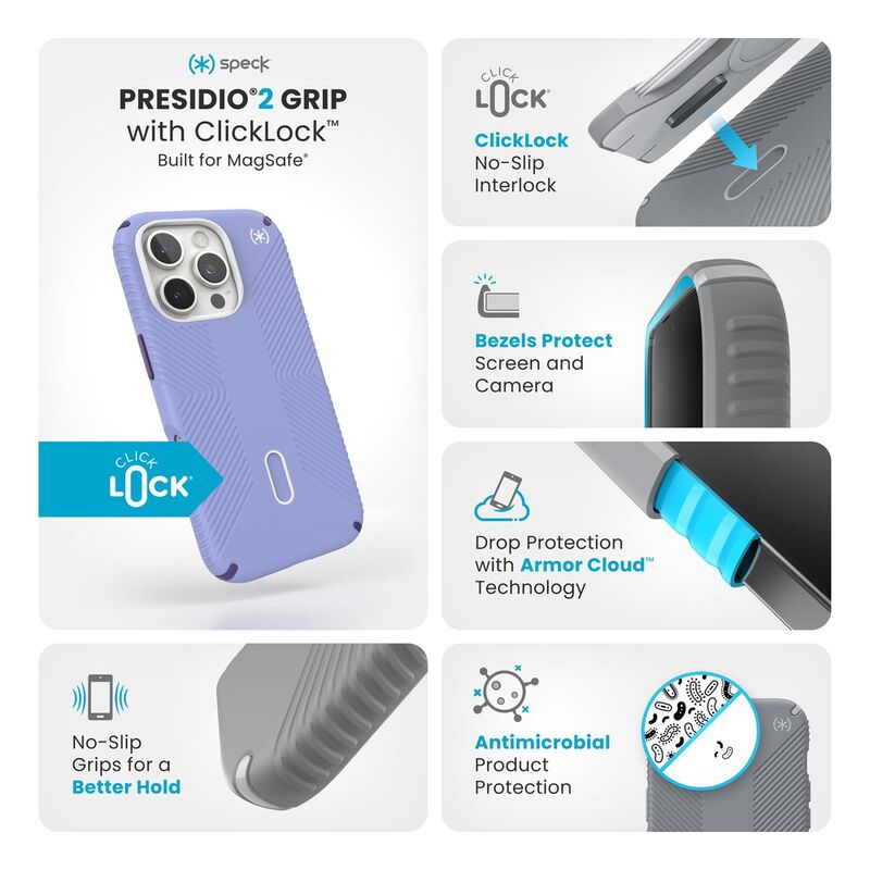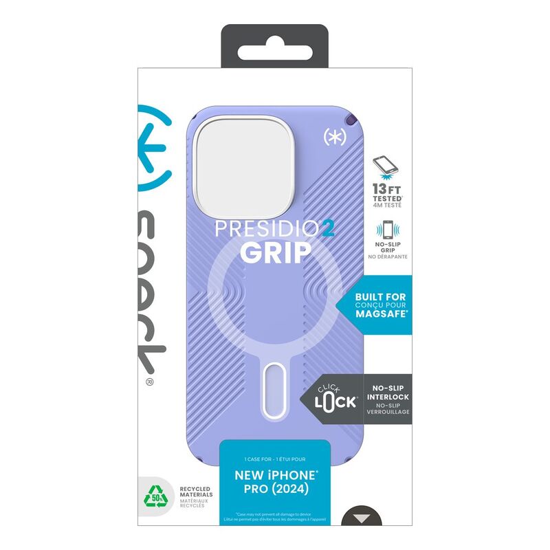 Speck iPhone 16 Pro Presidio2 Grip Case With MagSafe And ClickClock - Future Lavender/Cassis Purple
