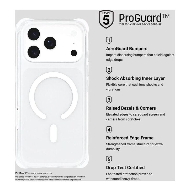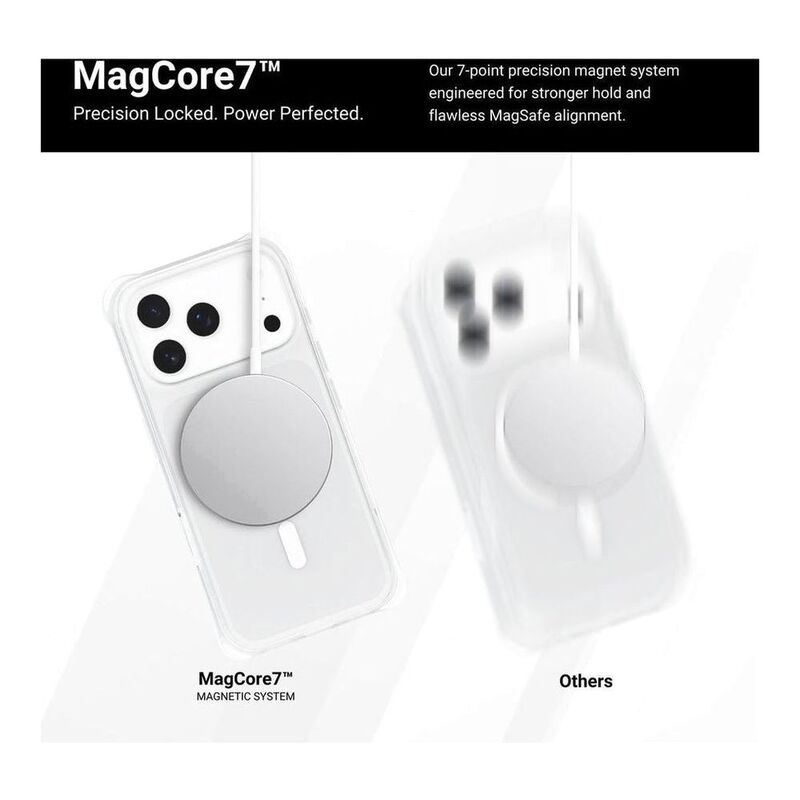 Clear hybrid design with dual PC plating for front and back reinforcement Integrated airbag bumpers at all corners to absorb and disperse impact Flexible TPU frame for easy installation and strong grip Slim profile with rugged protection — built for daily drops and shocks Compatible with MagSafe wireless charging and accessories UV-resistant and anti-yellowing coating preserves long-term clarity