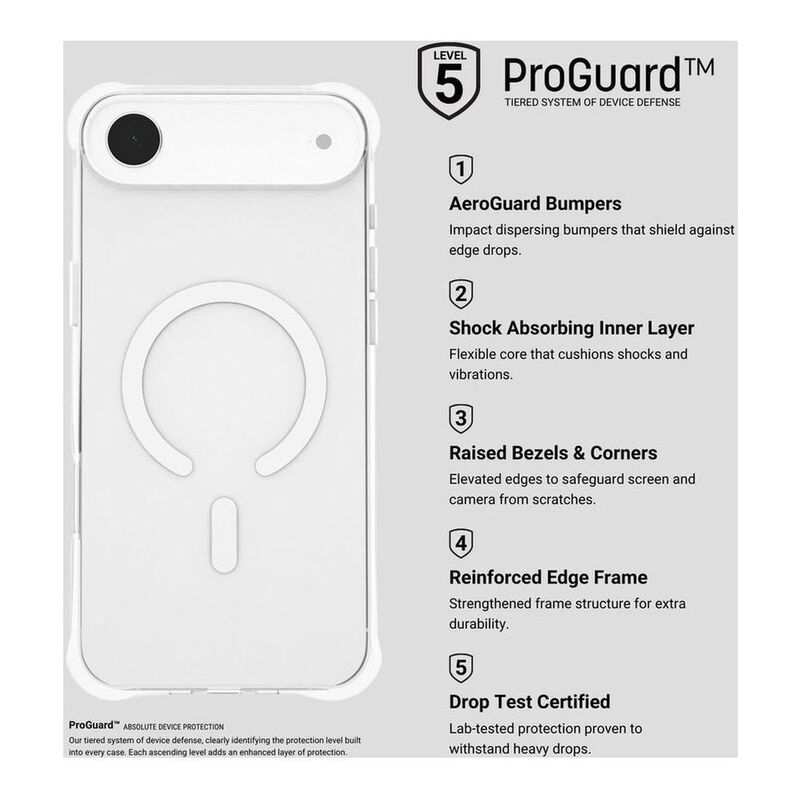 Clear hybrid design with dual PC plating for front and back reinforcement Integrated airbag bumpers at all corners to absorb and disperse impact Flexible TPU frame for easy installation and strong grip Slim profile with rugged protection — built for daily drops and shocks Compatible with MagSafe wireless charging and accessories UV-resistant and anti-yellowing coating preserves long-term clarity