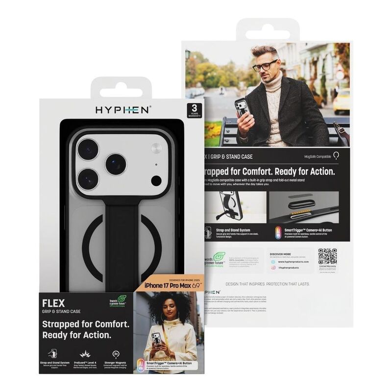 HYPHEN FLEX Grip & Stand MagSafe Case - Gray - iPhone 17 Pro Max - 6.9"