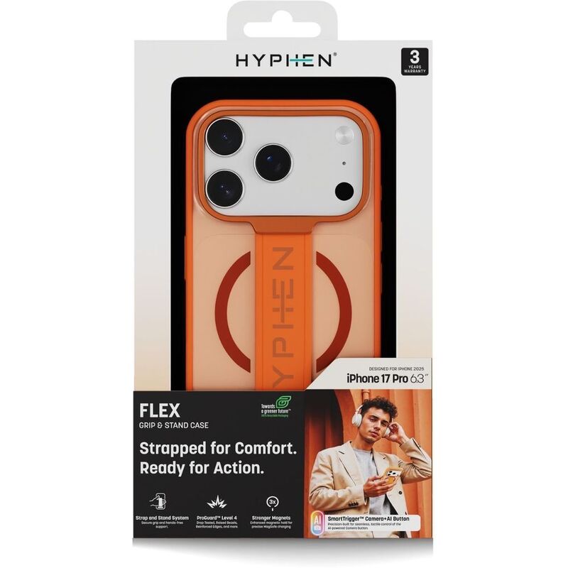 HYPHEN FLEX Grip & Stand MagSafe Case - Tangerine - iPhone 17 Pro - 6.3"