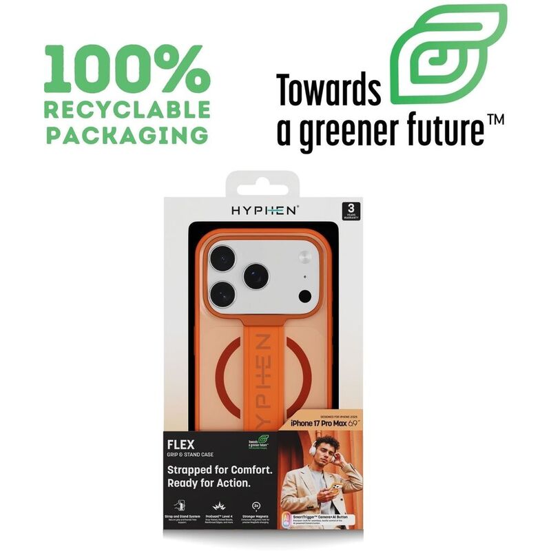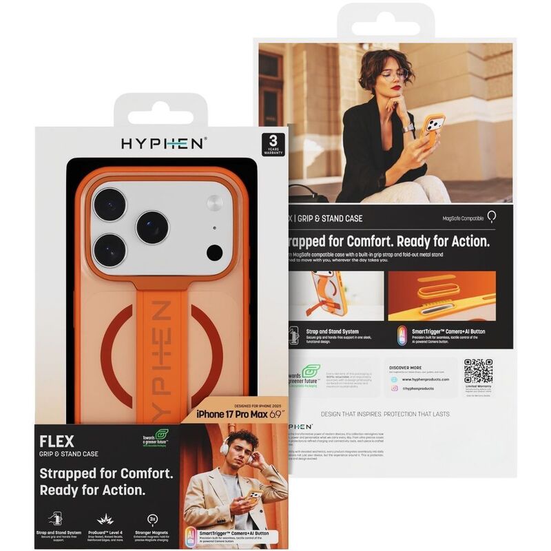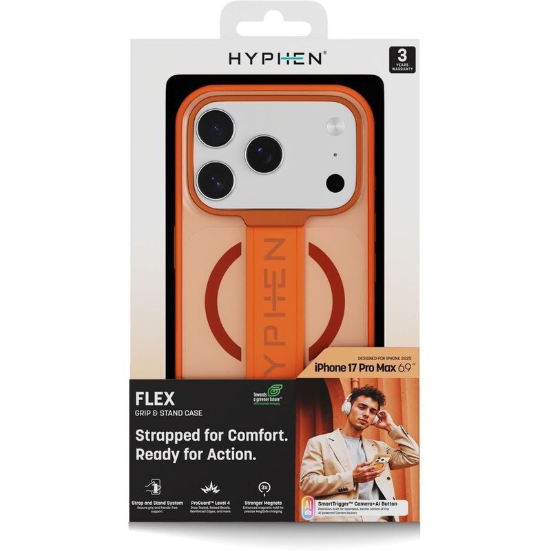 HYPHEN FLEX Grip & Stand MagSafe Case - Tangerine - iPhone 17 Pro Max - 6.9"