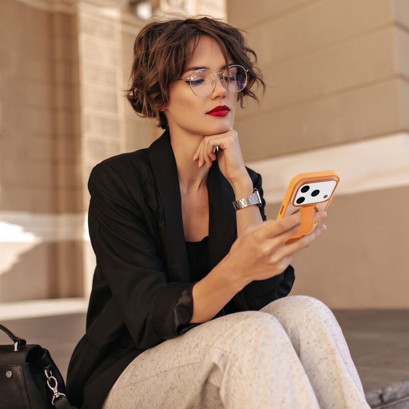 A built-in, reinforced strap keeps your phone secure in hand—ideal for content creators, commuters, or one-handed users. Flip it out for instant horizontal or vertical viewing. Crafted from premium metal for stability and durability. Designed with a built-in loop for attaching a wrist or neck strap—hands-free, drop-safe functionality for daily carry. Tough build case that protects your device from everyday bumps and accidental drops. Premium tactile buttons and a polished camera ring complete the look with subtle detailing.