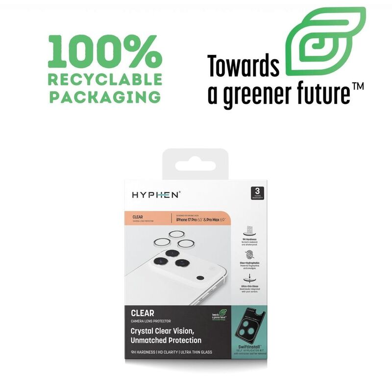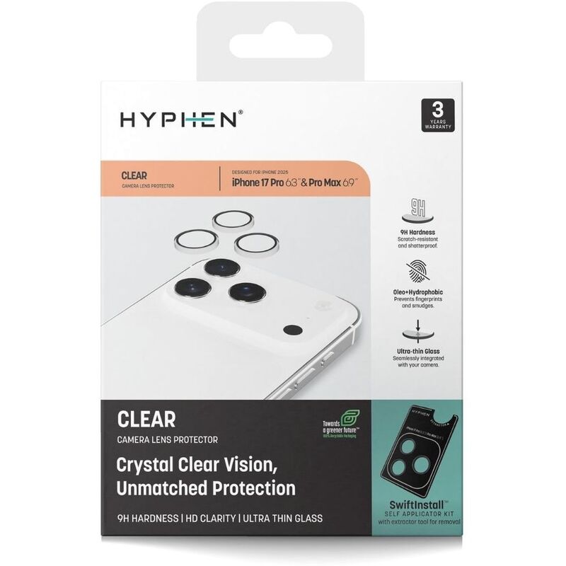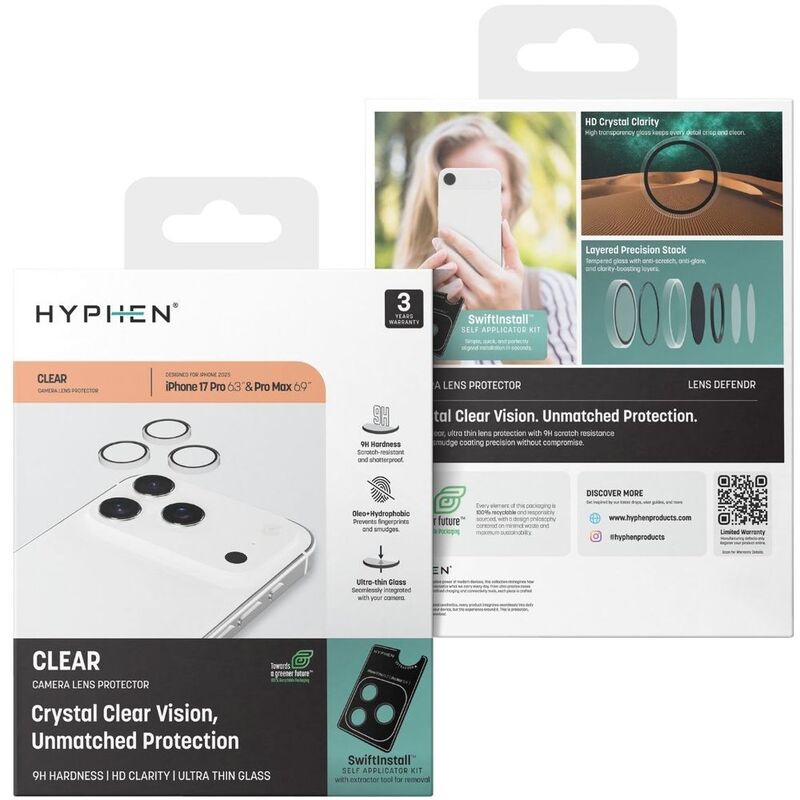 HYPHEN Camera Lens Protector - Clear - iPhone 17 Pro/17 Pro Max with Self Installation Board