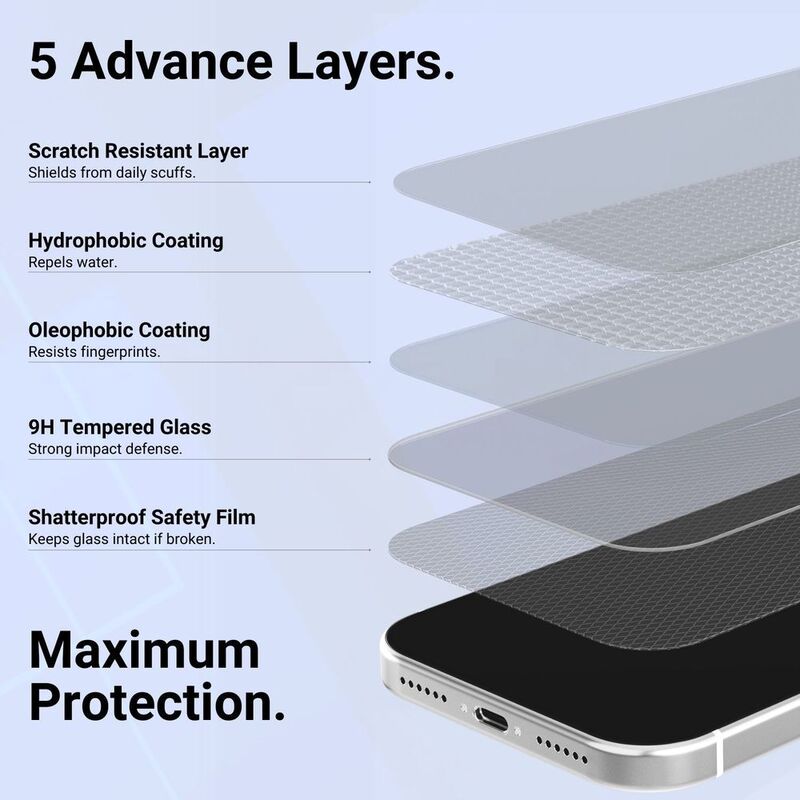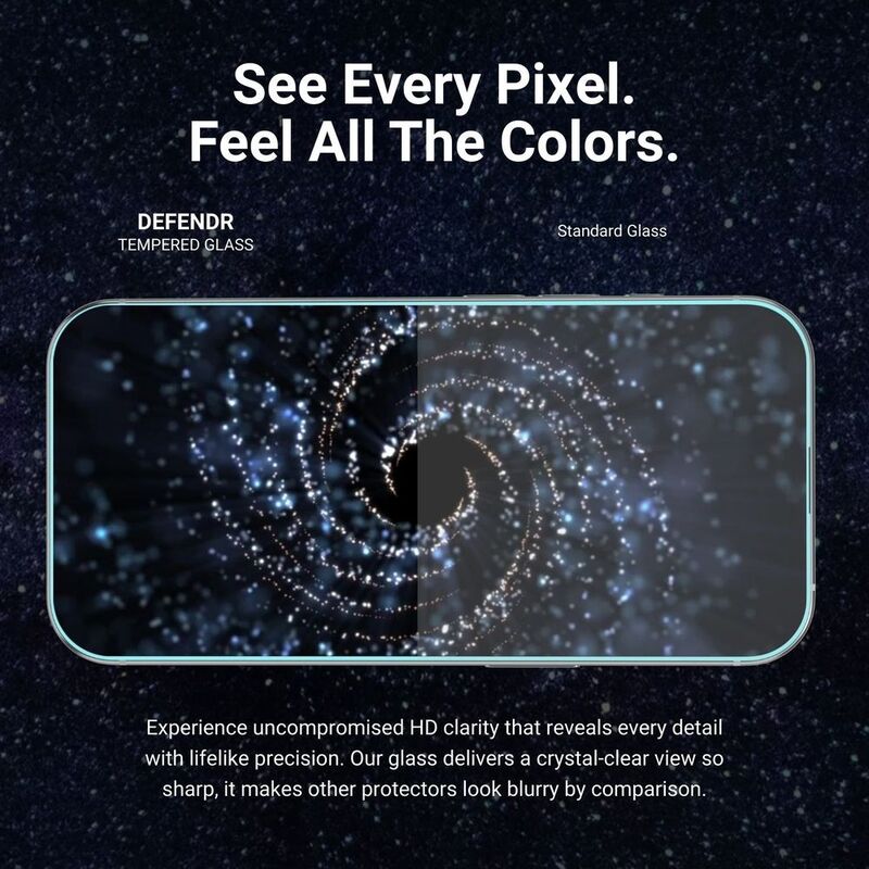SwiftInstall™ Self-Applicator Kit High Definition Tempered Glass 0.4mm Ultra-Thin, Precision Touch Face ID / Fingerprint Compatible Shatterproof & Shock-Resistant Case-Friendly Fit 9H Surface Hardness Oleophobic Anti-Fingerprint Coating Anti-Static Layer Maintains True Screen Clarity