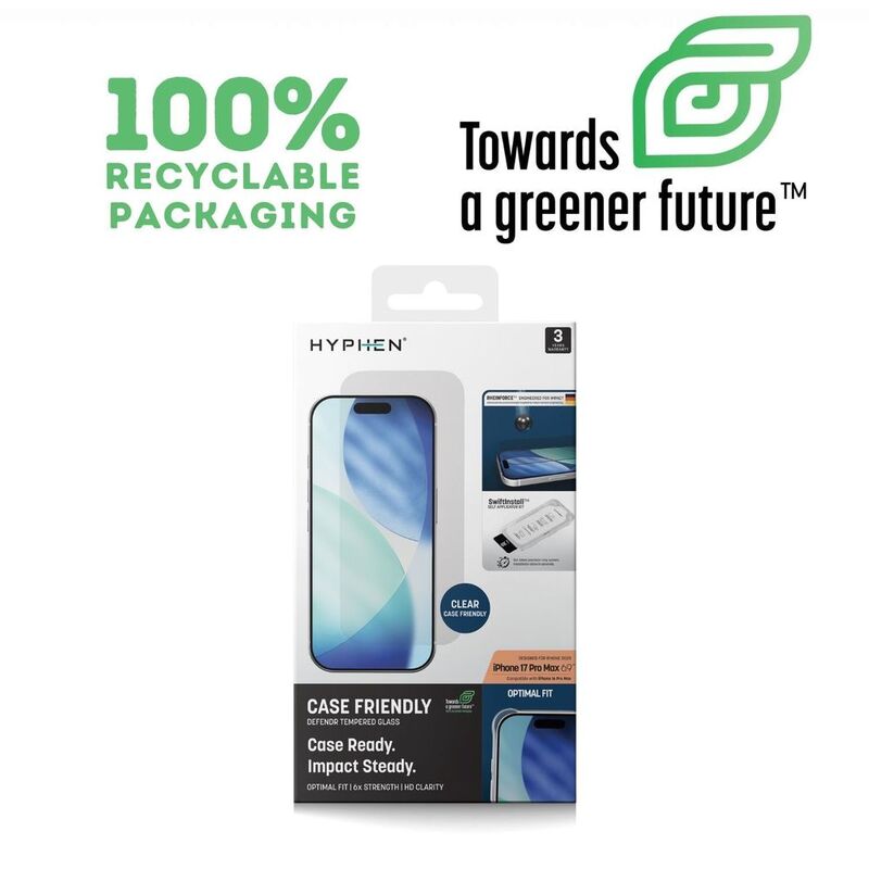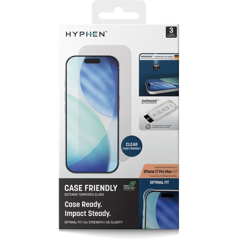 HYPHEN DEFENDR Case Friendly Tempered Glass with Applicator - iPhone 17 Pro Max - 6.9" with Self Applicator Kit