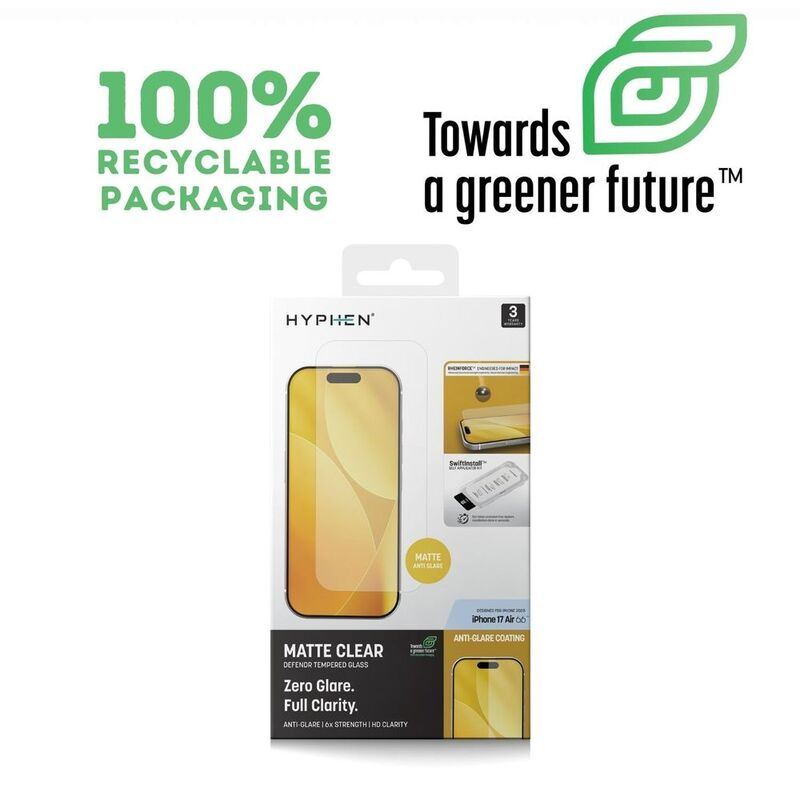 HYPHEN DEFENDR Matte Clear Tempered Glass with Applicator - iPhone 17 Air - 6.6" with Self Applicator Kit