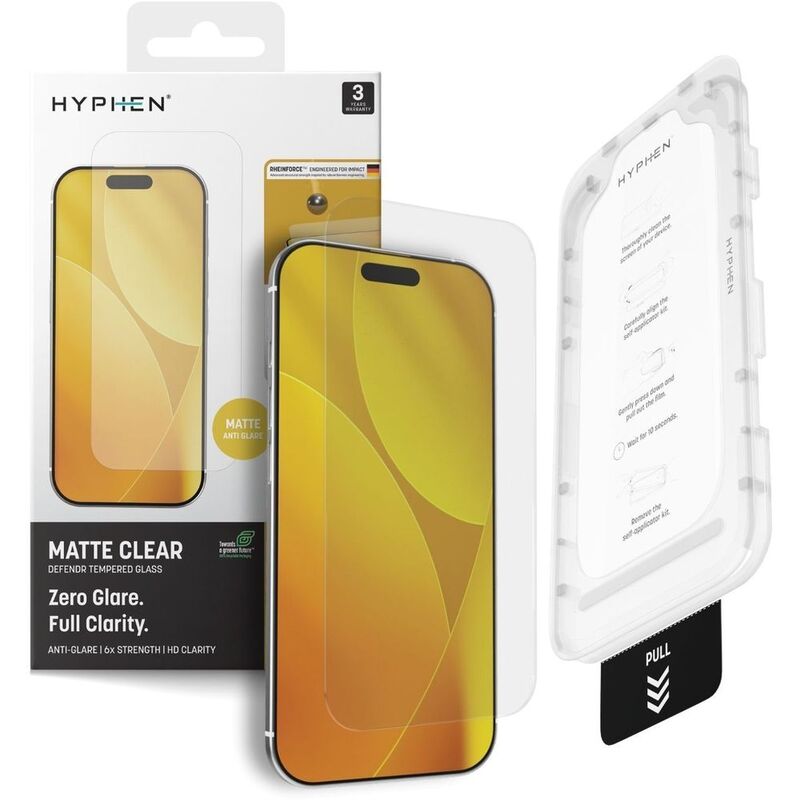 HYPHEN DEFENDR Matte Clear Tempered Glass with Applicator - iPhone 17 Pro - 6.3" with Self Applicator Kit
