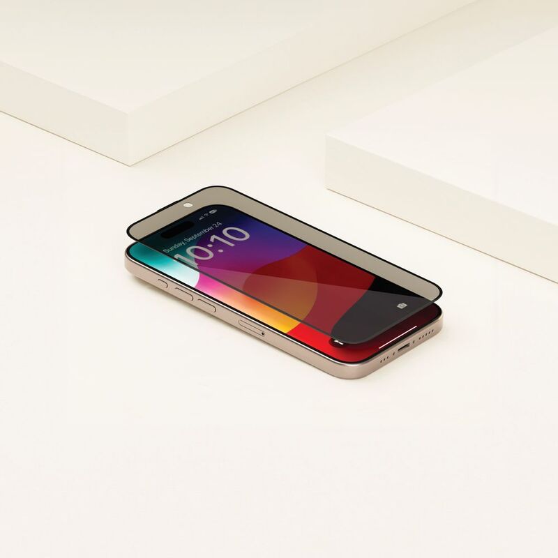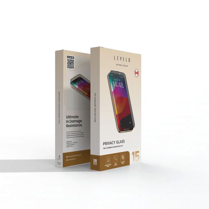 Levelo Full Screen Privacy Twice-Tempered Glass For iPhone 15 - Black