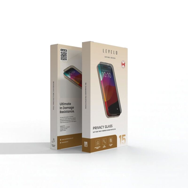 Levelo Privacy Soft Edge Twice-Tempered Glass For iPhone 15 - Black
