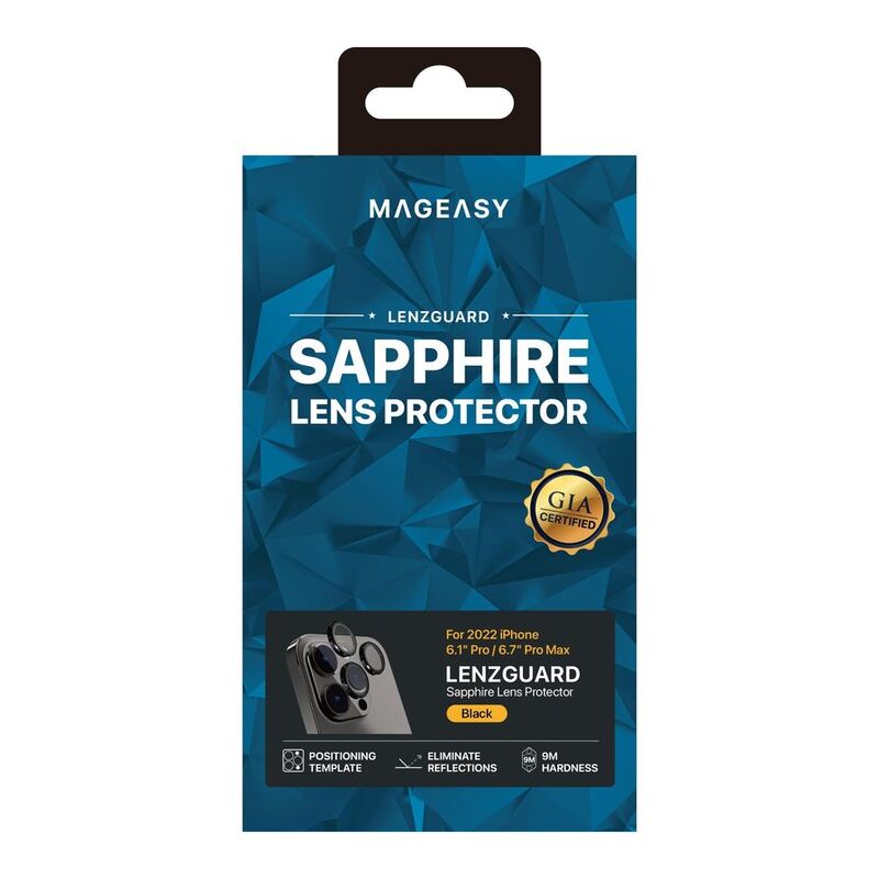 Mageasy Lenzguard Sapphire Premium Lens Protector For 2023 iPhone 15 Pro & iPhone 15 Pro Max - Black