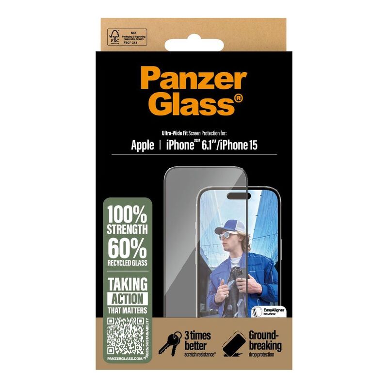 - MADE SAFER FOR ENVIRONMENT: This PanzerGlass screen protector is made from 60% recycled glass to guard your device while protecting the environment. Compatible with iPhone 16 6.1" 2024, iPhone 15, and iPhone 14 Pro.