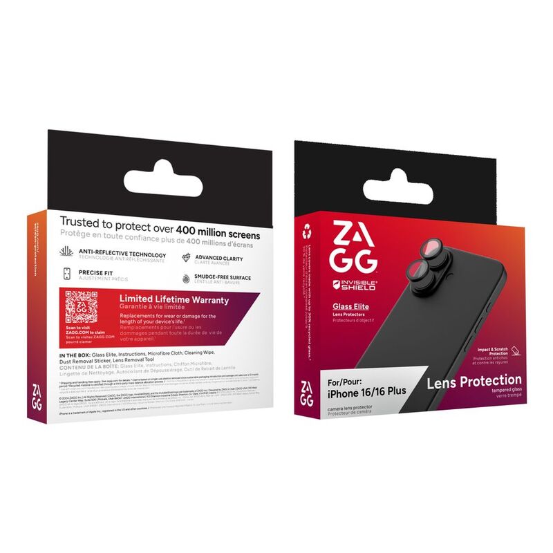 Zagg Invisibleshield Premium Glass Elite Camera Lens for Apple iPhone 16/ 16 Plus - Dwight