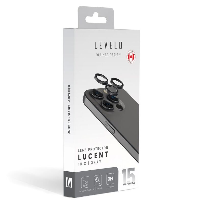 Levelo Lucent Trio 9H Hardness Camera Lens Protector For iPhone 15 Pro / 15 Pro Max -Grey